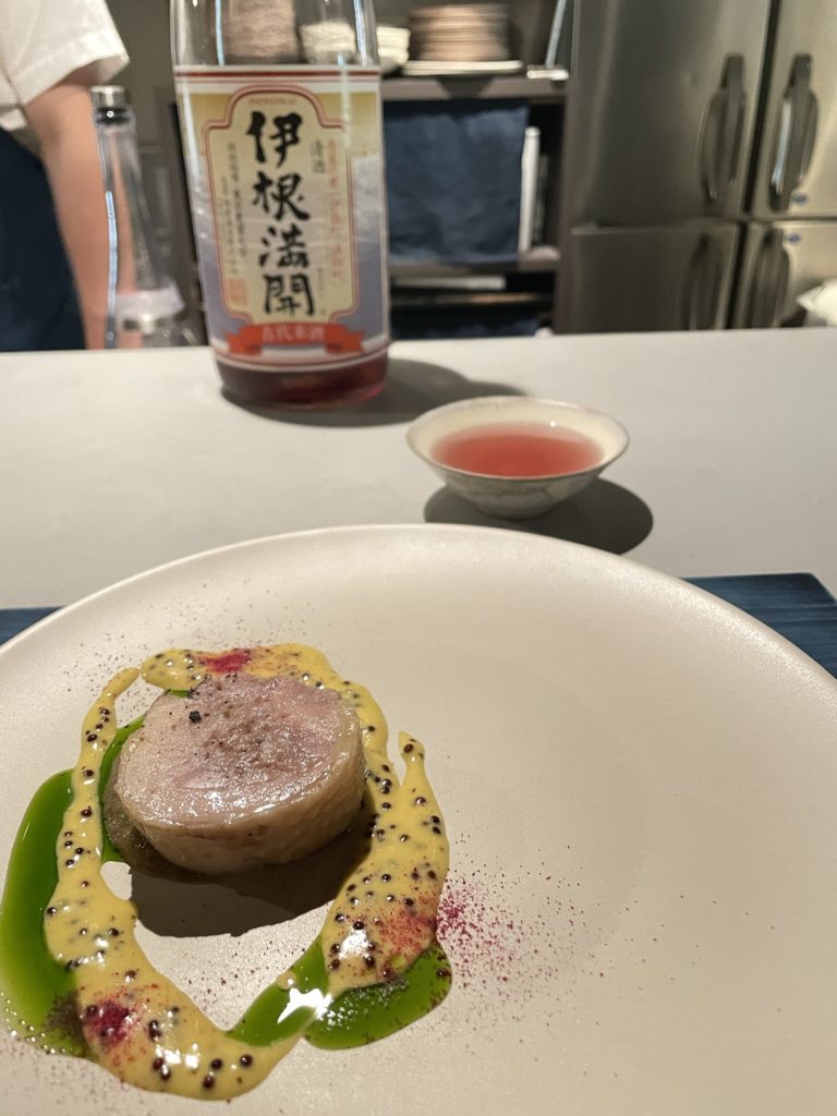フレンチなんで、合わせるのは冷たい日本酒だけかと思っていたら、そんなこともなく。まさかの熱燗や出汁割りが目の前に出てきて、非常に面白い体験でした。