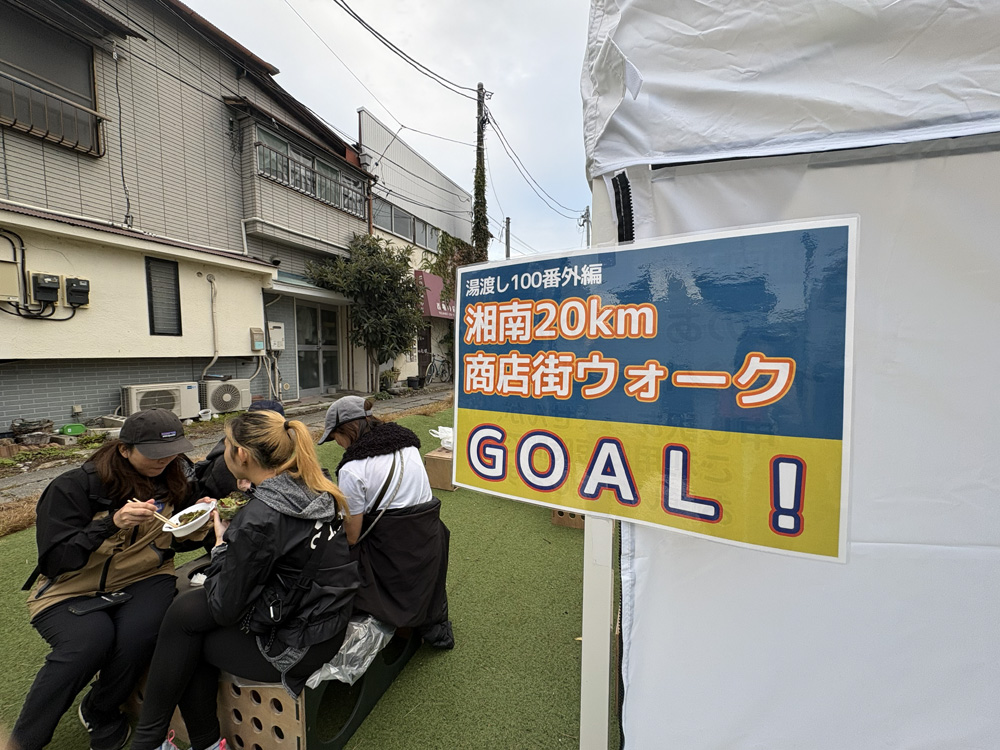 平塚から鎌倉までの20kmを歩いてもらいました。わたしは運営側なので、各店を回って段取りをしておりました。雨予報なのにほとんど雨降らず、晴れパワーを発揮しました。